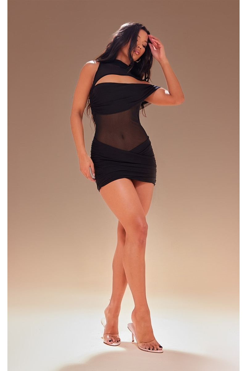Представлення преміум -чорного двошарового сітчастої сітки Twist Detail BodyCon. Ця чорна сукня BodyCon, виготовлена з розглянутої двошарової сітки, має повороту деталізації та влеслива міні -довжина. Посилити властиву елегантність з делікатними золотими обручі з нашої колекції ювелірних виробів для розглянутого вечора. Slashsleeves: Sleevelessoccasion: Вечір