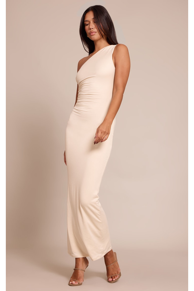 Високо вишукано в кремовому м’якому дотику одного плечового сукні Midaxi. Зроблений з кремового м'якого дотику, він оснащений дизайном одного плеча, встановленим силуетом та довжиною Midaxi. Стиль з ковзанням на підборах мулів та сумкою зчеплення для без особливих шикарних виглядів. Довжина приблизно 134,5 см/ 53 "(на основі розміру вибірки uk 8) Модель