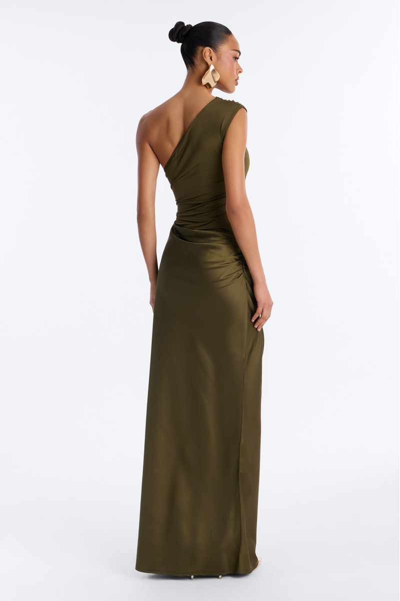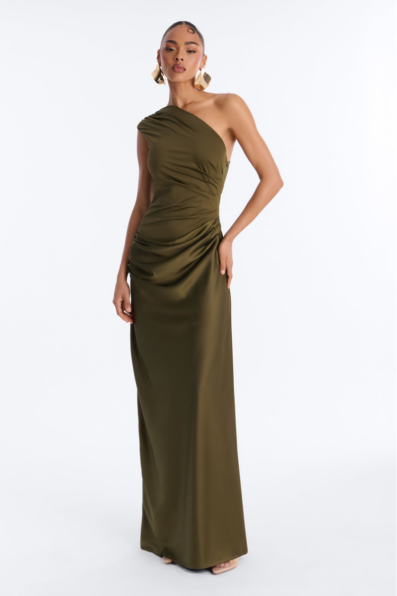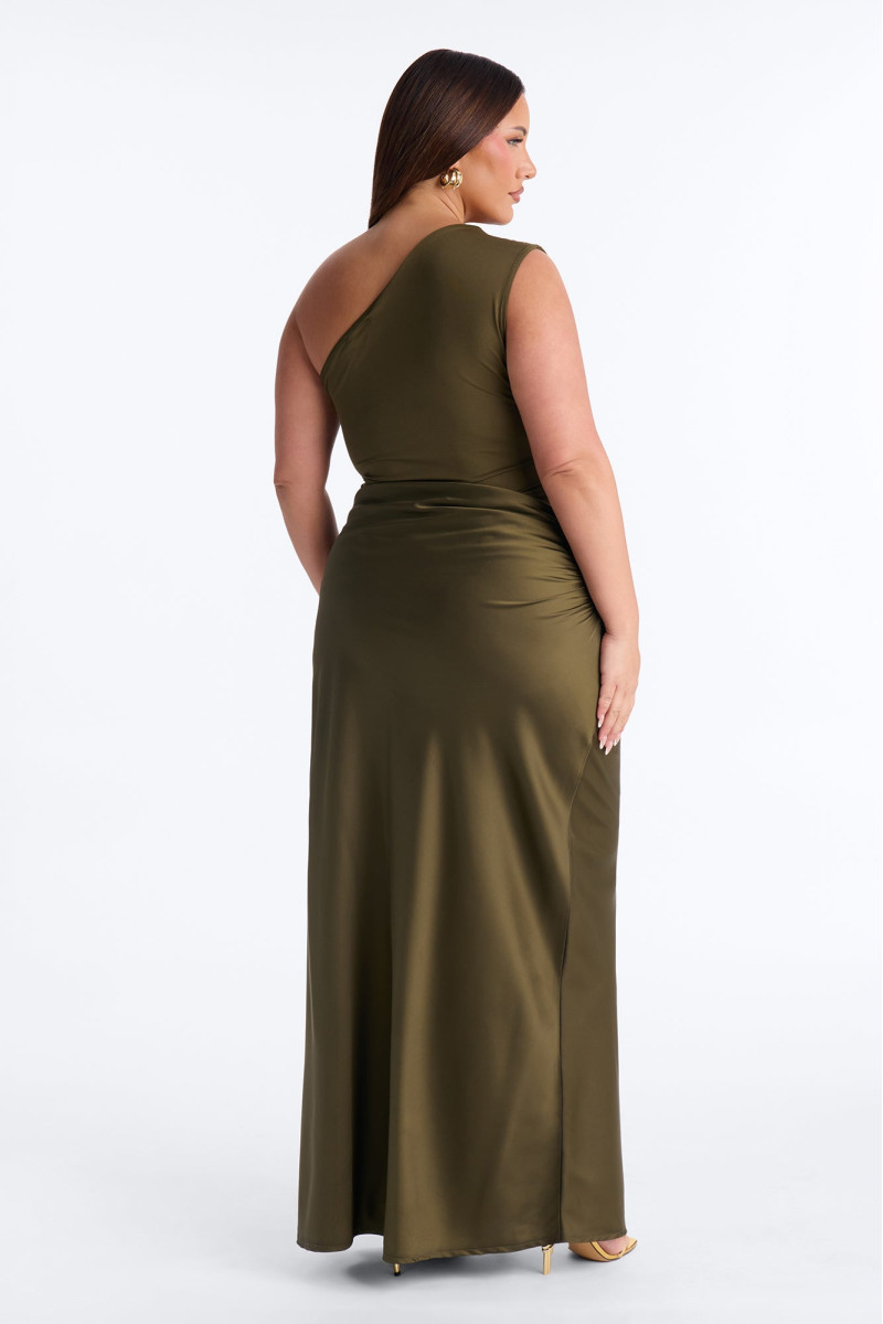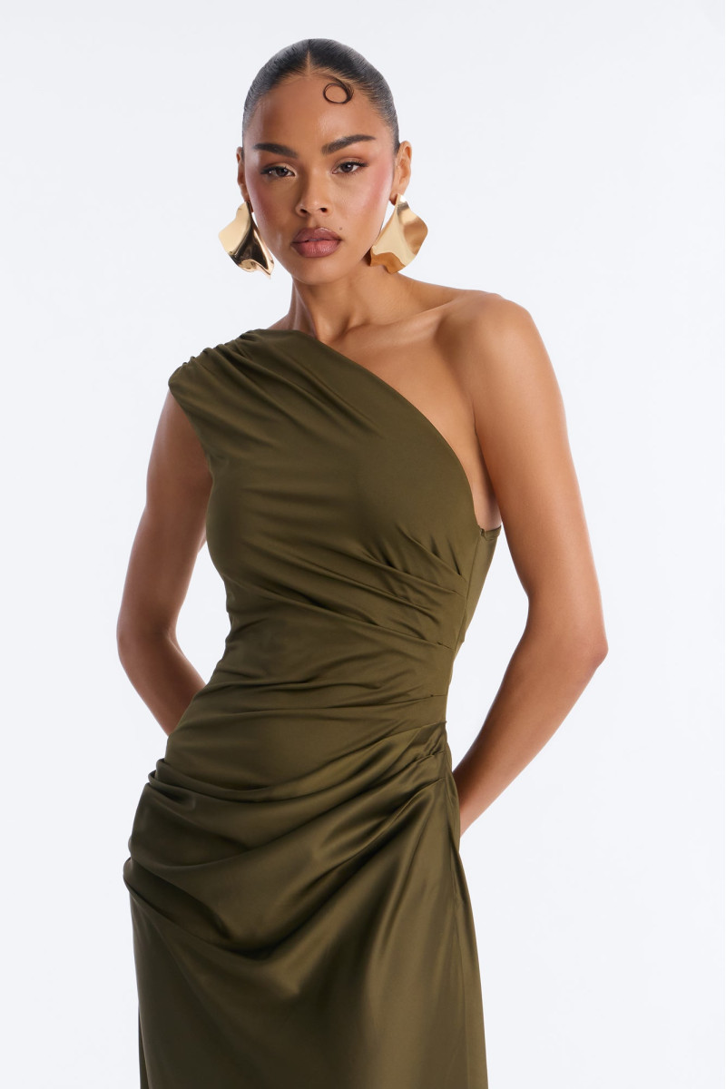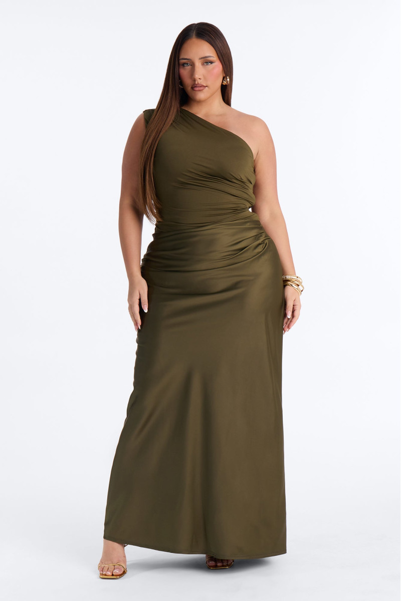 Відчуйте себе королевою вечора в цій вишуканій атласній максі-сукні "Міські вогні". Асиметричний крій з одним відкритим плечем додає спокусливості та сучасності, а гладкий атласний матеріал виблискує під світлом. Ця сукня створена для особливих моментів, коли ви хочете сяяти.