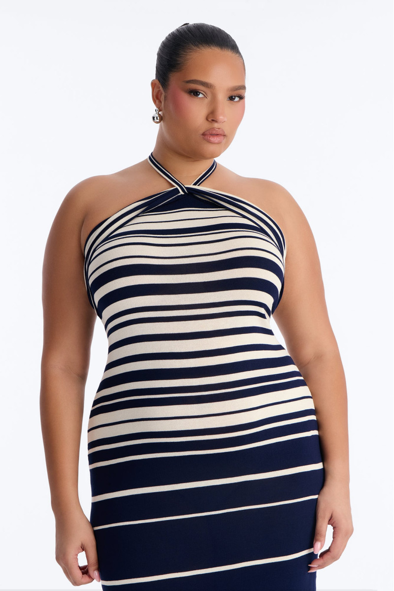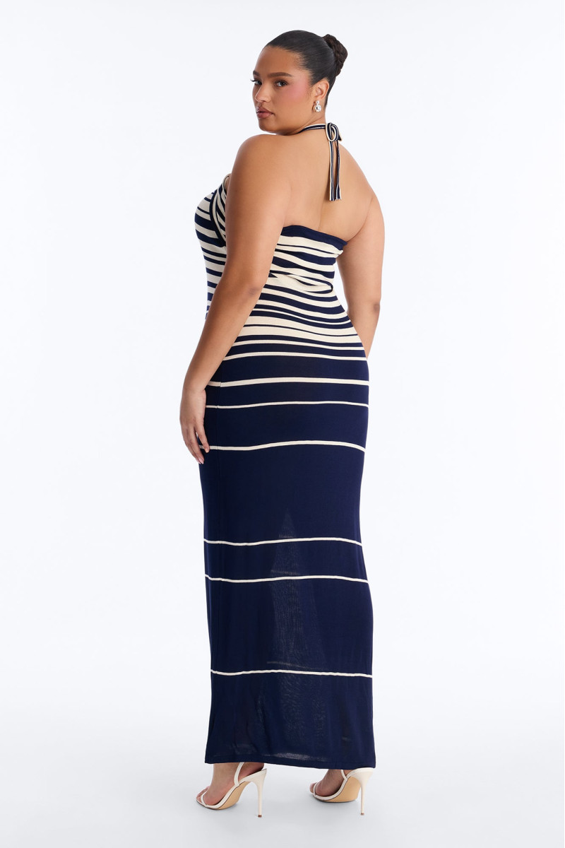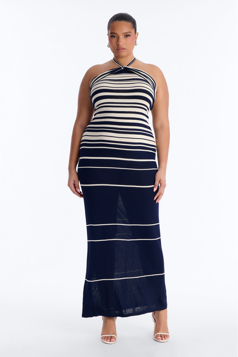 Ця затишна в'язана максі-сукня "Морський бриз" – ідеальний вибір для прохолодних днів. Смугастий візерунок додає класичного шарму, а м'яка пряжа забезпечує неперевершений комфорт. Сукня чудово підійде для створення невимушеного, але стильного образу.