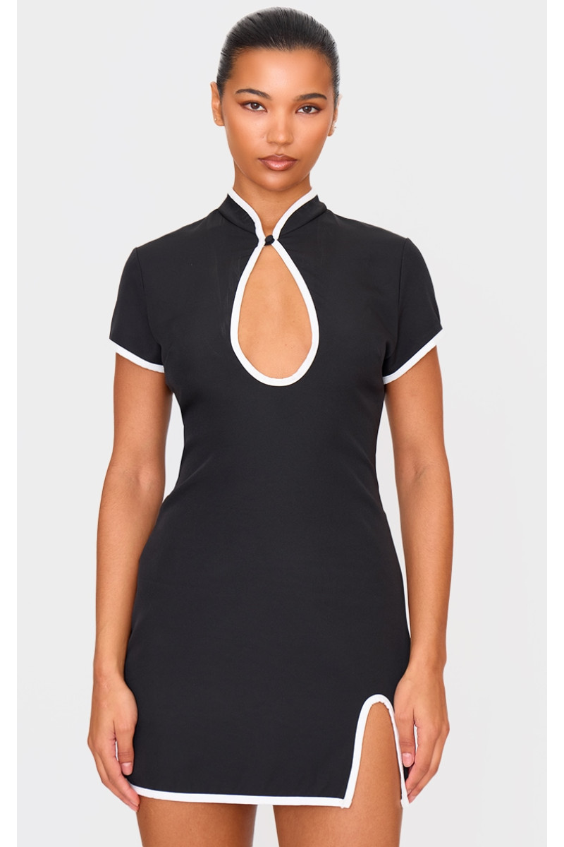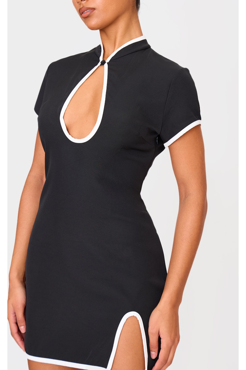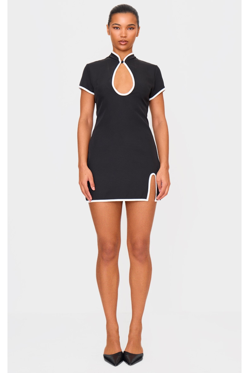 Виглядайте шикарно в цій чорній контрастній міні-сукні з отвором для ключів. Ця міні-сукня, виготовлена з чорного матеріалу з отвором для ключів і контрастною підкладкою, є обов’язковою для вас. Як ти можеш протистояти? Стиль із туфлями на підборах і простими аксесуарами для неперевершеного образу. Це так від нас. Довжина приблизно 81 см/32 дюйма (на основі розміру вибірки UK 8) Модель носить розмір UK 8/ EU 36/ AUS 8/ US 4. Зріст моделі — 5 футів 6 дюймів Категорія: СукніТип продукту: Обтягуюча сукняКолір: ЧорнийМатеріал: Тканий крепДекольте: Високі рукава: ShortOccasion: вечір