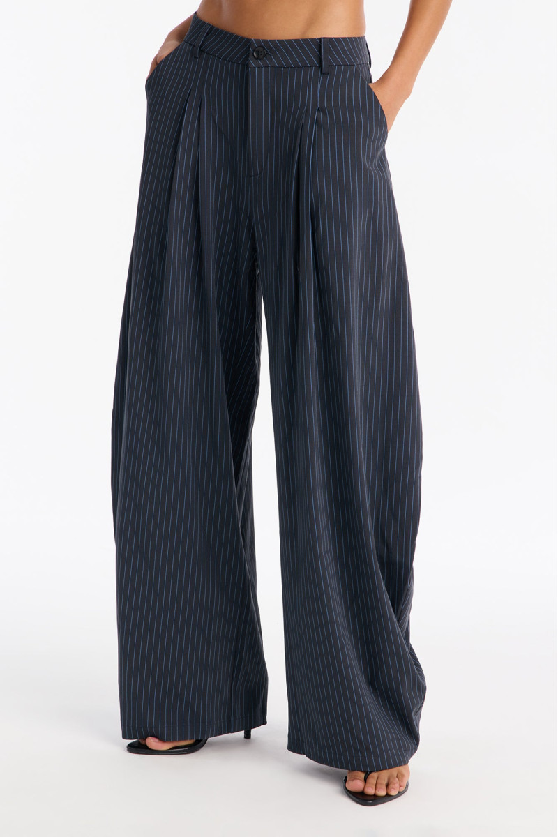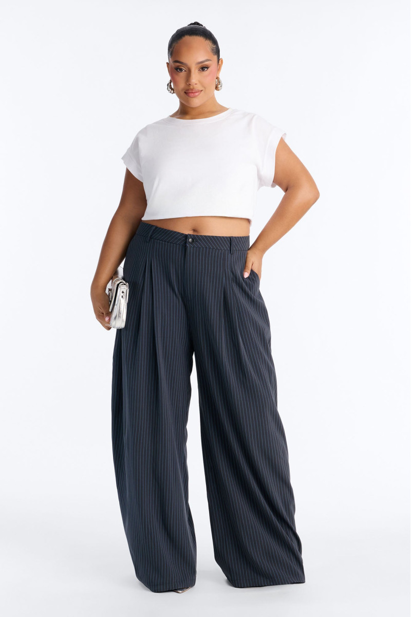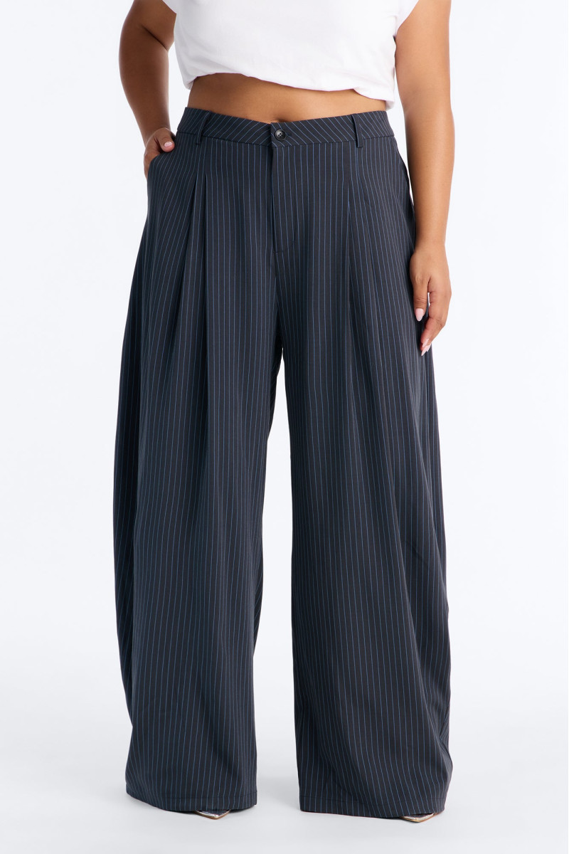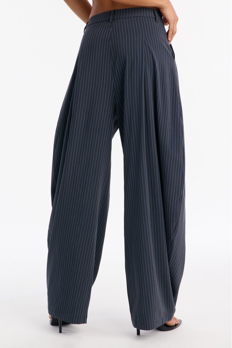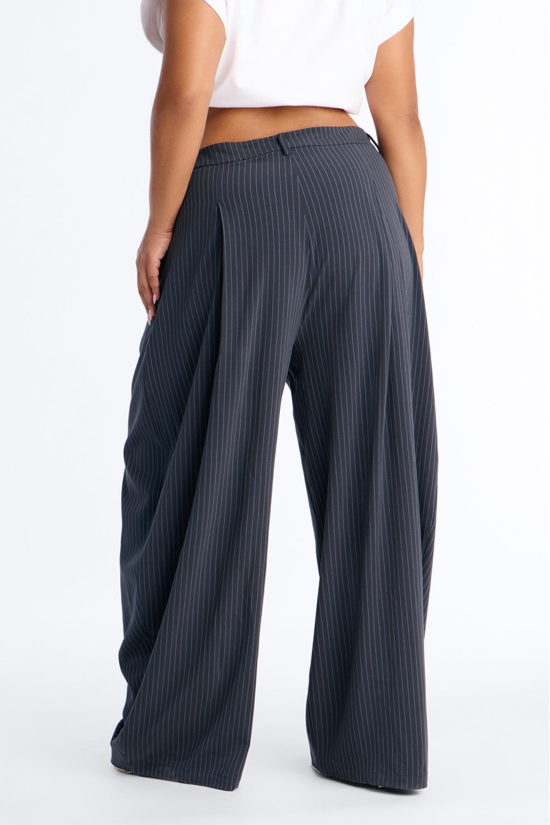 Сучасні штани з ефектним принтом "смужка" та унікальним кроєм "бочка", що підкреслює фігуру. Довжина 33 дюйми створює елегантний силует. Чудовий вибір для ділових зустрічей та повсякденного носіння.