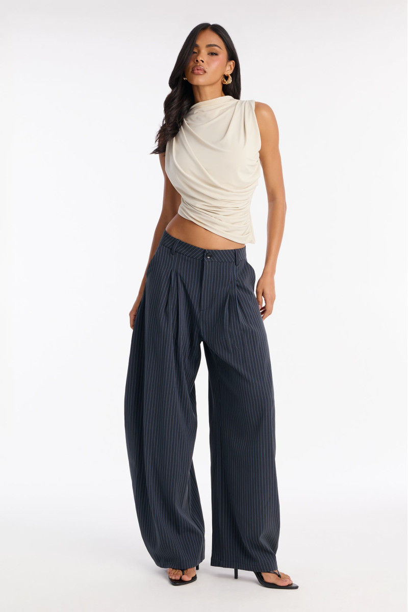 Штани "Офісний Стиль" з прінтом "смужка" та ефектом "бочка" 33"