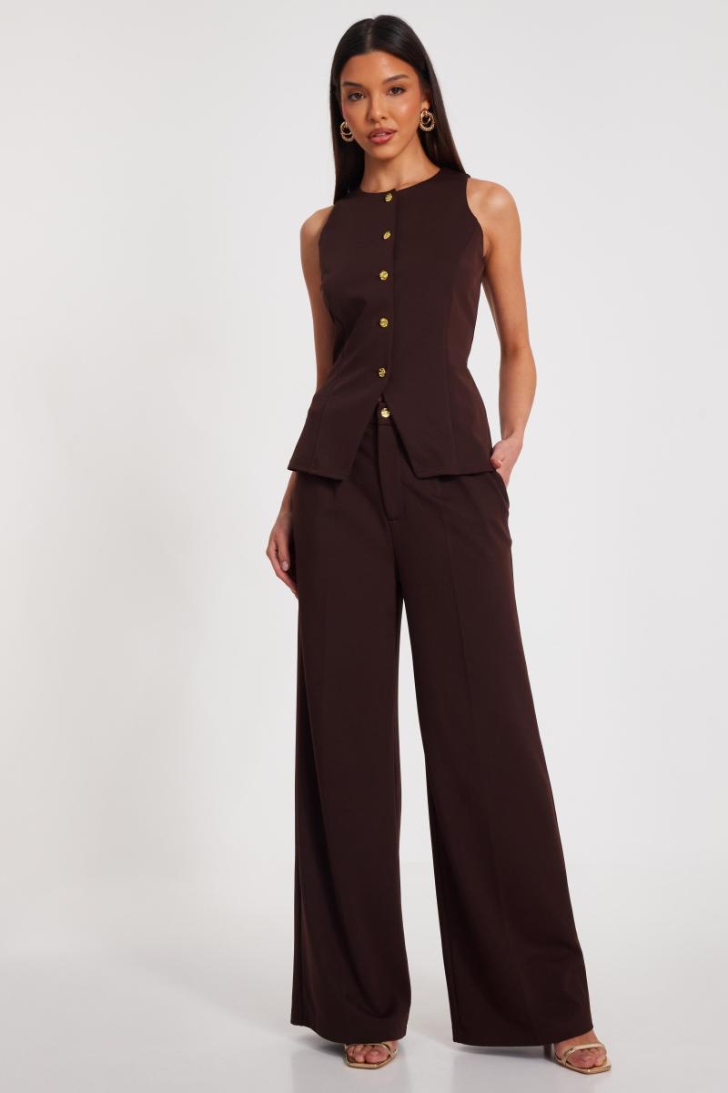 Ці штани з високою талією мають ткану тканину та контрастну деталізацію кнопки, забезпечуючи комфортну форму та стильний силует, придатний для випадкових або робочих одягу.