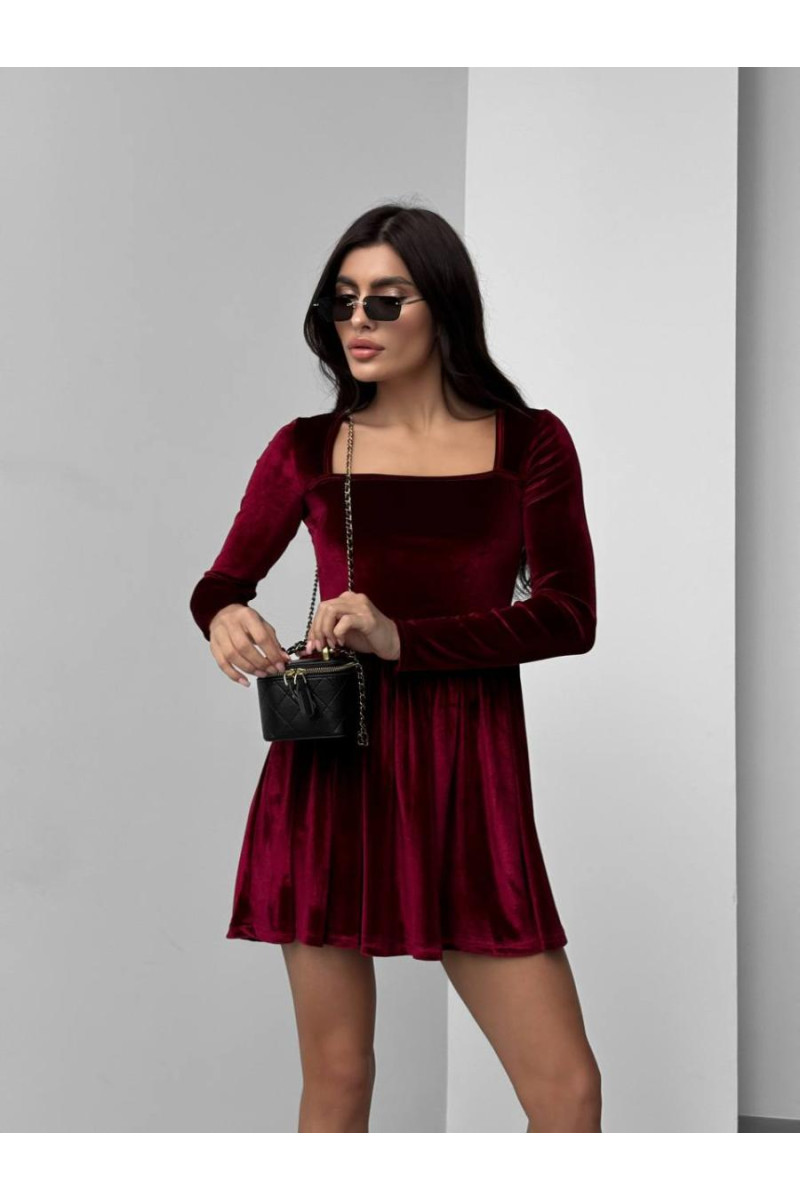 Модель Жіноча сукня з бархату Розмірний ряд S,M,L,XL Тканина бархат якісний Корея Кольори марсала, смарагд та чорний