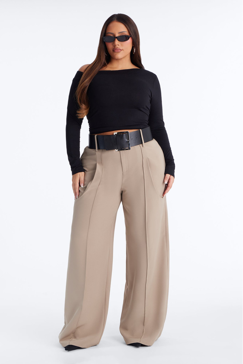 Модні штани вільного крою, що розширюються донизу, з акцентними кишенями та стильним поясом. Довжина 33 дюйми створює легкий та повітряний силует. Ці штани додадуть елегантності вашому образу.