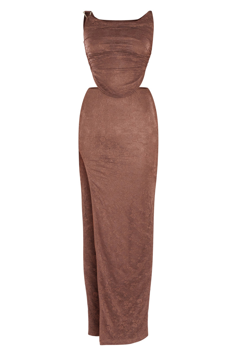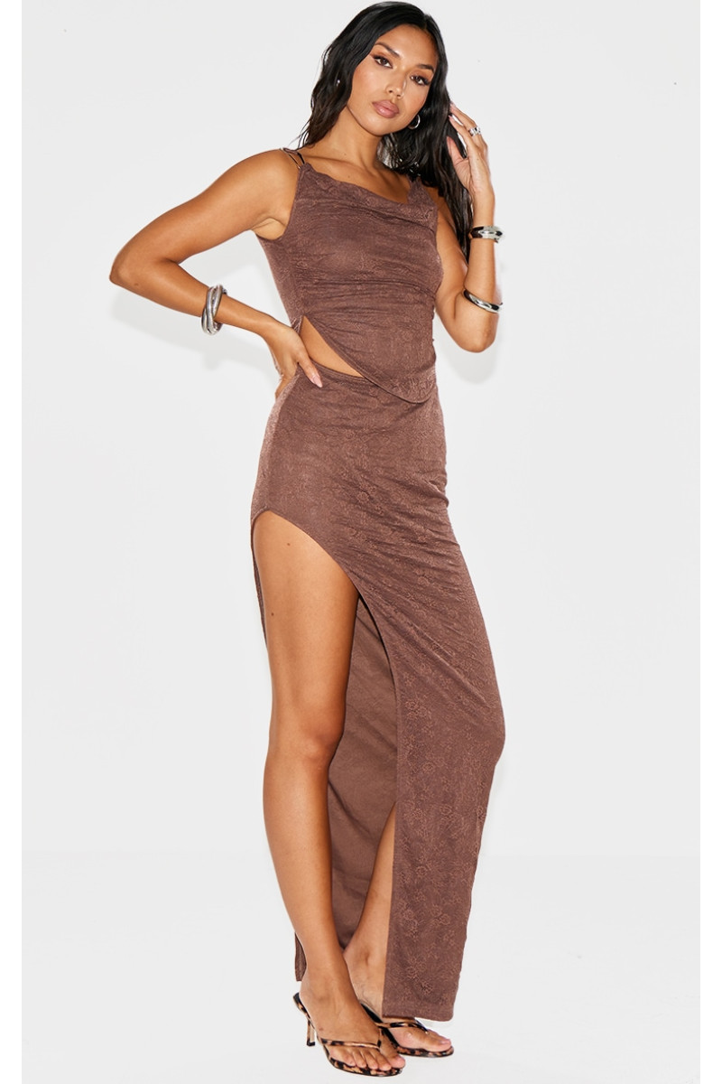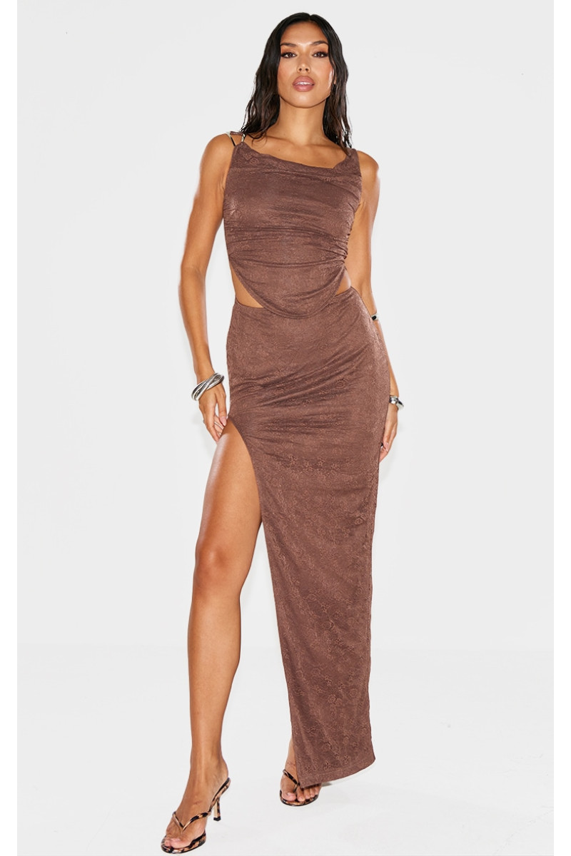 Підніміть свій нічний образ на новий рівень із цією коричневою мереживною сукнею максі з вирізом. Виготовлений із нереально коричневої мереживної тканини, з вирізом і високим розрізом на стегнах, цей виріб створить у вас впевненість і позицію. Поєднуйте свою максі-сукню з елегантними туфлями на підборах, сріблястими браслетами та вашою сумкою, щоб ідеально підійти. Довжина приблизно 155 см/61 дюйм (на основі розміру вибірки UK 8) Модель носить розмір UK 8/ EU 36/ AUS 8/ US 4. Зріст моделі — 5 футів 9 дюймів Категорія: СукніТип продукту: Облягаюча сукняКолір: КоричневийМатеріал: Текстурований трикотажДизайн: ПринтВиріз: Асиметричні рукава : ShortOccasion: вечір